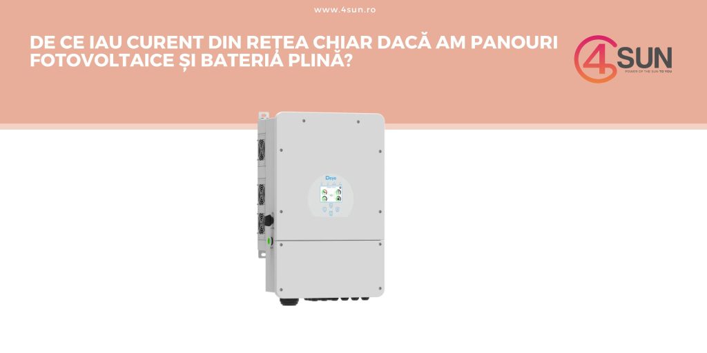 Mulți proprietari de sisteme fotovoltaice observă același lucru imediat după instalare: casa consumă 200 W, panourile produc, bateria este încărcată 100%, și totuși pe contor sau în aplicația invertorului apare că 50–100 W vin în continuare din rețea. Prima reacție firească este să crezi că sistemul nu funcționează corect. În realitate, acesta este un comportament normal și are explicații tehnice foarte clare.